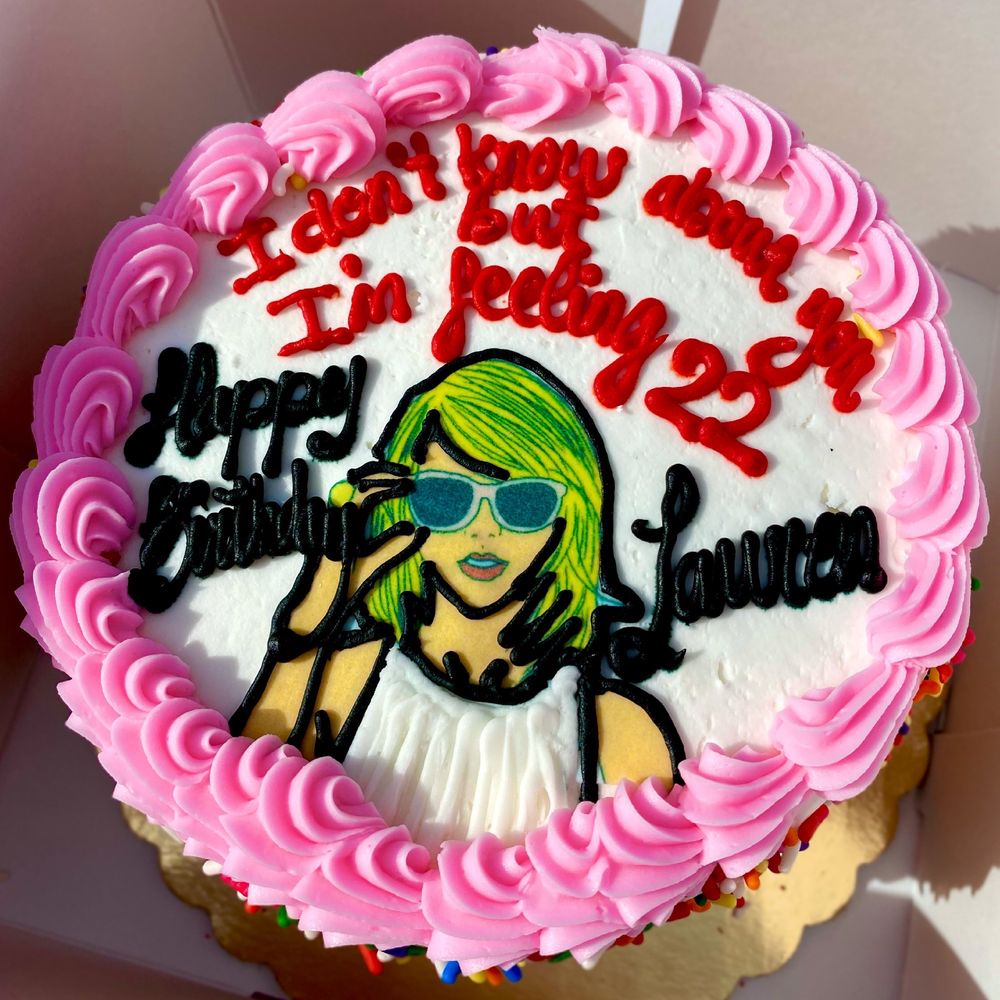 A honey-soaked cake, topped with a honey cream cheese icing, & garnished with a sugar honey bee.